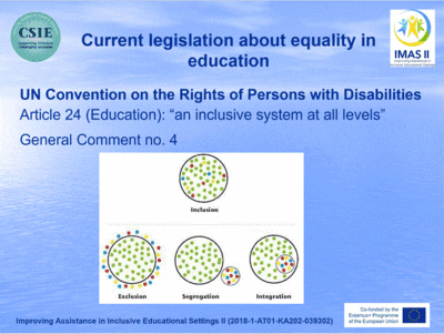 The IMAS II project was a two-year project funded by the Erasmus+ programme of the European Union (2018-1-AT01-KA202-039302). It was launched in October 2018 at the University of Graz, Austria, home of the lead partner, and concluded on 31 March 2021, following an extension necessitated by the Covid-19 pandemic. The project set out to support and strengthen the development of learning and support assistants’ competencies for inclusive practice, in ways which are consistent with the requirements of Article 24 (Education) of the UN Convention on the Rights of Persons with Disabilities. CSIE was one of nine project partners from six European countries. For more information please visit the project website.